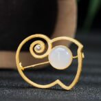 このブローチは、手に取ると軽くてつけ心地がとても快適です。カメレオンのシルエットが上品でありながらも遊び心を感じさせるデザインで、さりげなくお洒落を演出してくれます。目の部分に使用されたホワイト瑪瑙が、ブローチ全体に華やかさを添えています。どんなシチュエーションにもマッチするアクセサリーで、日常のコーディネートにアクセントを加えてくれること間違いありません。是非お気に入りの洋服に合わせて、お楽しみください。