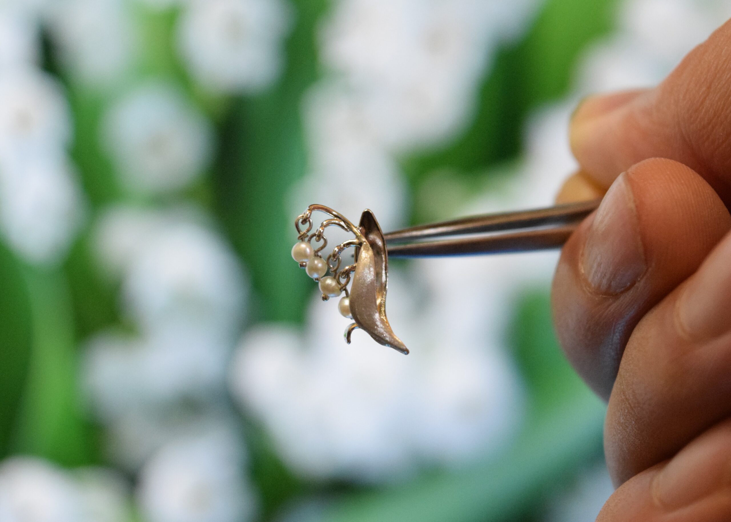 このように、細部にわたる丁寧な工程を経て、鈴蘭をモチーフにした美しいジュエリーが完成します。