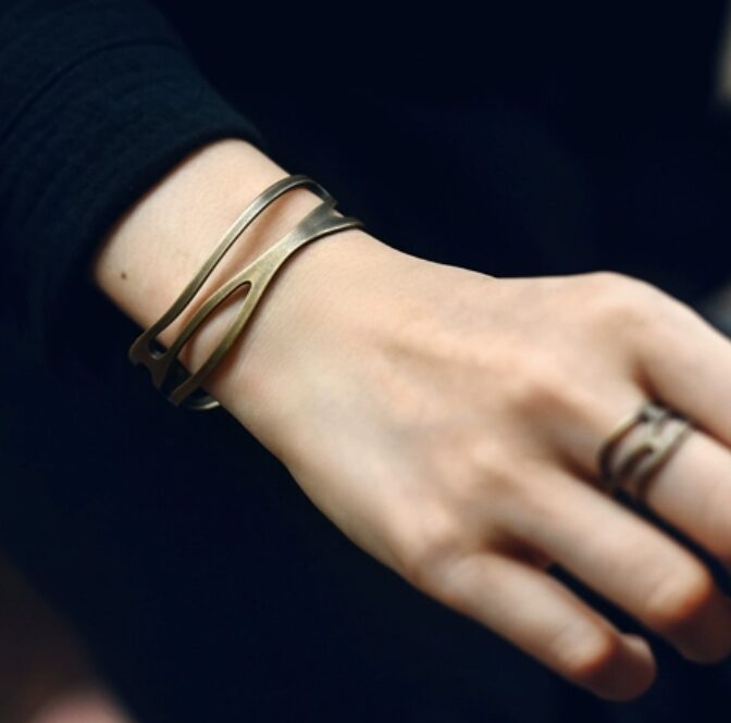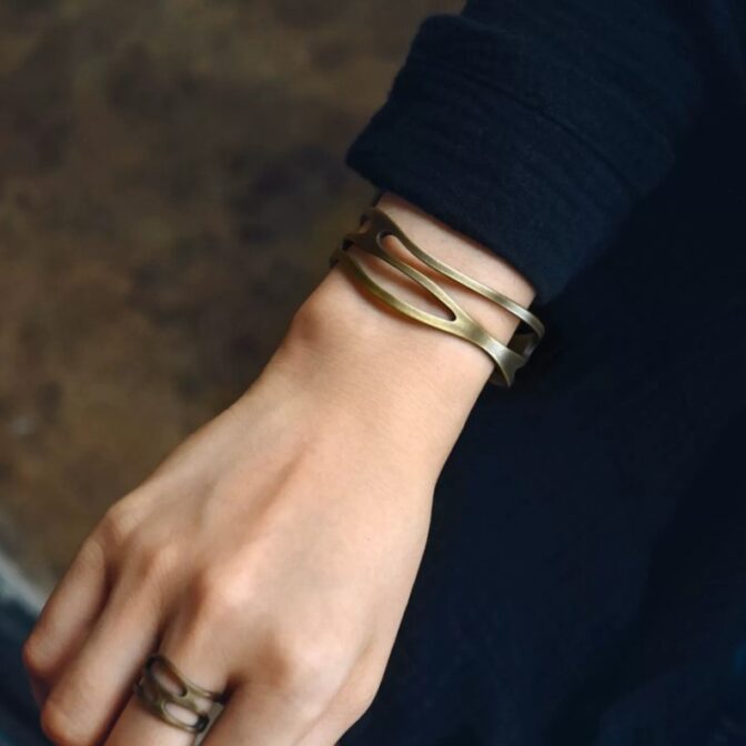 黄銅という素材は、金属の中でも軽量でしなやかな特徴を持っています。そのため、バングルを装着したまま長時間過ごしても、手首に負担をかけずに快適に過ごせます。