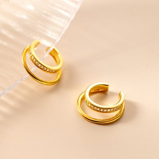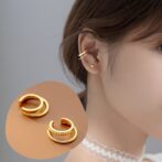 耳のラインをキレイに魅せるイヤーカフは、大小の二つの輪で構成され、シンプルながらもエレガントな印象を与えます。耳元に優雅さを添えるこのアクセサリーは、日常の装いに華やかさをプラスしてくれることでしょう。気軽に身に着けられるデザインなので、ファッションのアクセントとしておすすめです。
