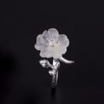初めて見た時、惚れました。花期が短くて年中に見られません。いつでもどこでもその美しさを見れるように、アクセサリーにしました。水晶という素材を使用して「サンカヨウ」の特性を生かしながら制作しました。水晶をマット仕上げにし、白くて透明感のあるお花を表現しました。水にぬれると透明になります。「サンカヨウ」の特性を最大限に表現できました。