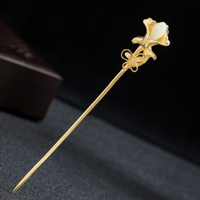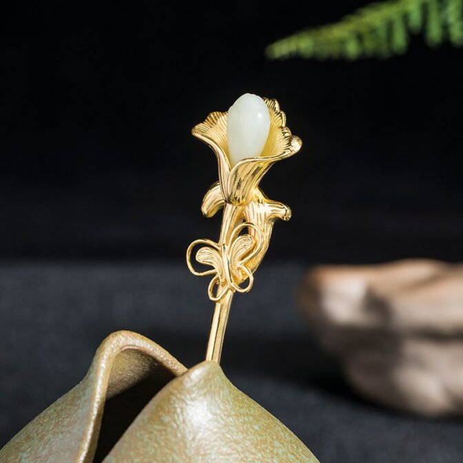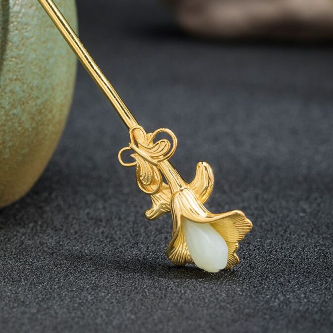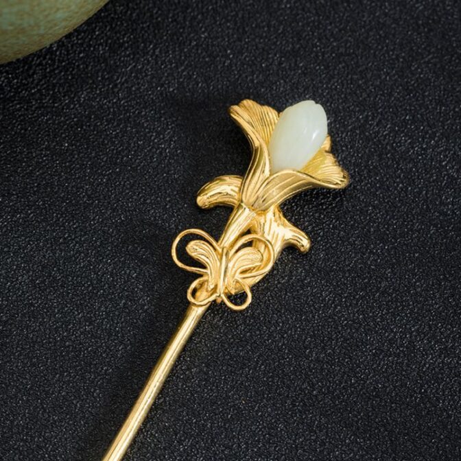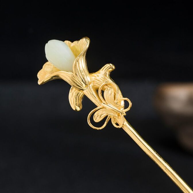 ネフライトの木蓮簪 – 繊細なデザインが魅力のヘアアクセサリーK115
