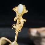 この木蓮の簪は、優雅で美しいデザインで、繊細な手作りの技術が光ります。ネフライトを使うことで、簪全体に白色の輝きが加わり、まるで本物の木蓮の花が頭に咲いているかのような雰囲気を醸し出しています。この簪を身につければ、あなたも優雅で気品あふれる雰囲気を演出すること間違いありません。是非、特別な日やイベントでお使いいただき、周囲の人々を魅了してみてください。