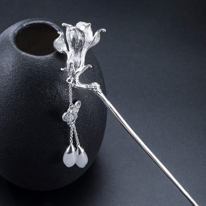 オリジナルアクセサリーシルバーかんざし白木蓮(ハクモクレン)