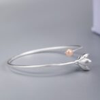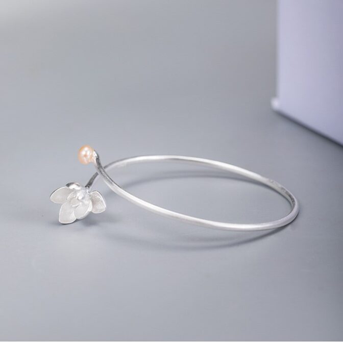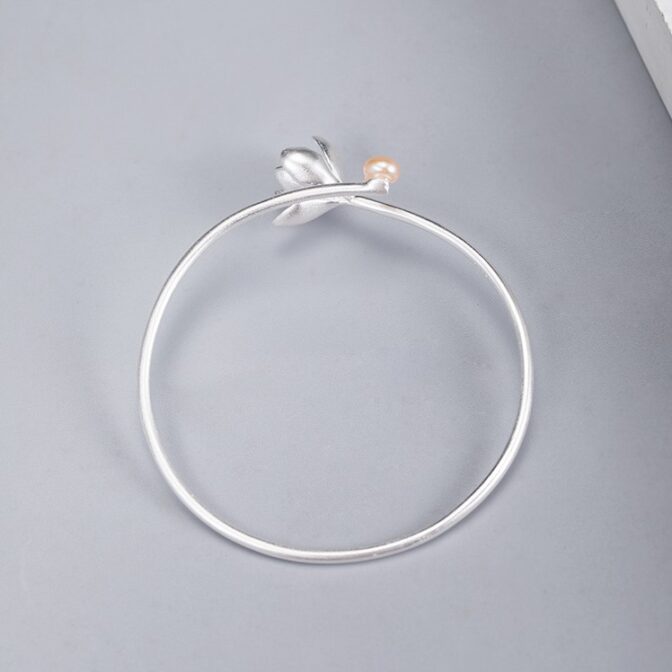 オリジナルアクセサリーシルバーバングル淡水パール白木蓮(ハクモクレン)