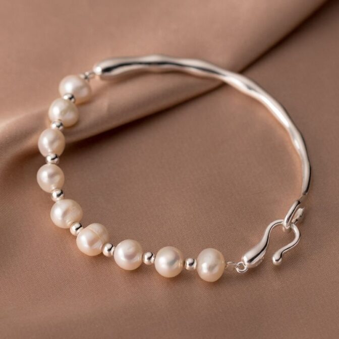 このブレスレットは、特別な日に身に着けるのにぴったりです。バロックパールは、自然の形状を残したままで加工されたパールで、それぞれが個性的な形をしています。シルバーの輝きと合わさって、高級感があります。また、シンプルながらもエレガントなデザインは、どんなファッションスタイルにも合わせやすく、普段使いにもおすすめです。幅広い年齢層の女性に愛される、美しいブレスレットです。