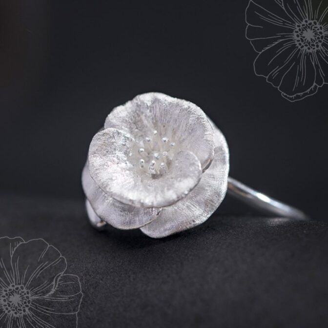 ヒナゲシのリング – 自然の美しさを指先に取り入れる R360