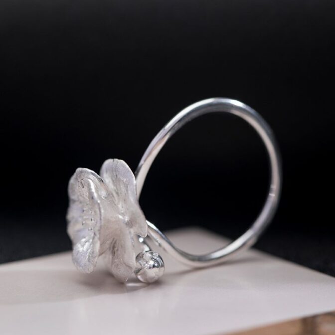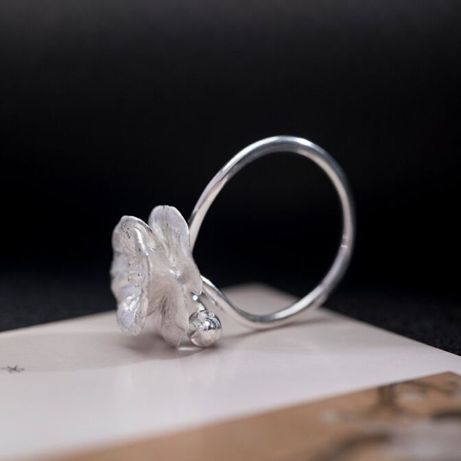 <受注制作>ヒナゲシのリング – 自然の美しさを指先に取り入れる R360