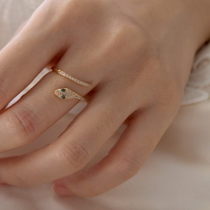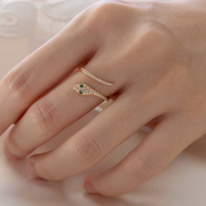- スネークのリングが欲しかったのですが、なかなか良いのがなく、探してました。 このリングは、華奢で素敵です。 スネークでこういう華奢な感じが無かったので嬉しいです。 目、も良いですね。 ありがとうございました。