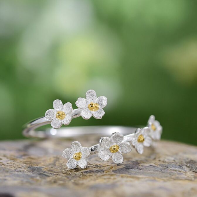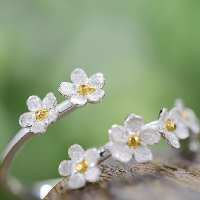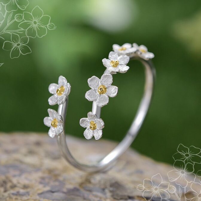 ワスレナグサの花言葉は「私を忘れないで」と「真実の愛」です。このアクセサリーを身につけることで、大切な人への思いをいつも胸に刻むことができます。控えめながらも印象的なデザインは、どんなスタイルにも合わせやすく、毎日のおしゃれに華を添えてくれるでしょう。特に、「真実の愛」を象徴するこのリングは、永遠の絆を誓う特別な瞬間にぴったりです。大切な人への贈り物や、自分自身へのご褒美として選んでみてはいかがでしょうか。