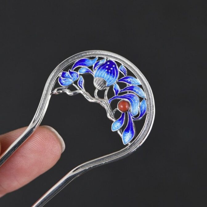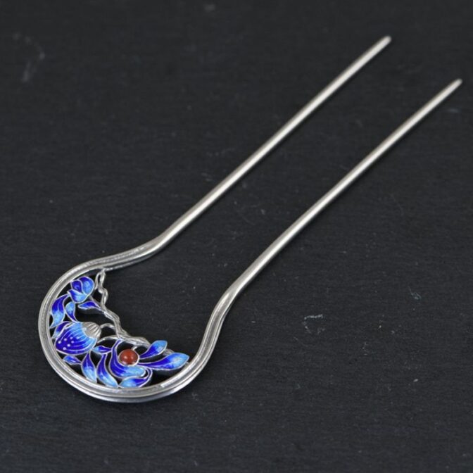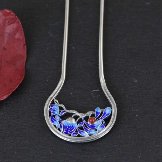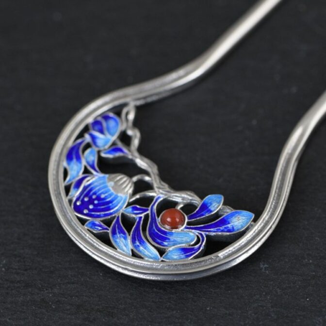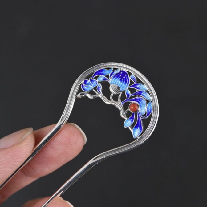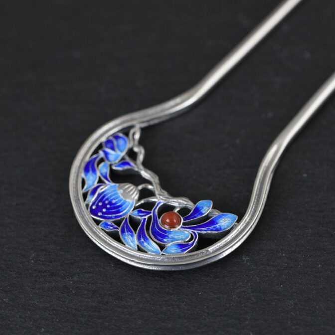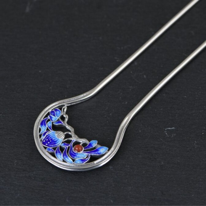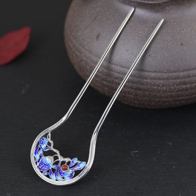七宝焼き蓮の花簪 – 美しさと清らかさを象徴するK100