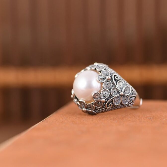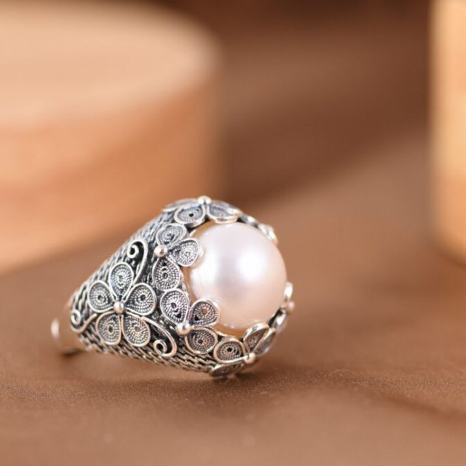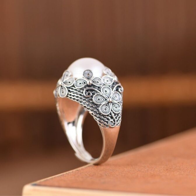 <受注制作>梅の花とパールのリング – 日本の自然美を身に着ける上品なアクセサリーR212