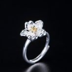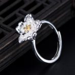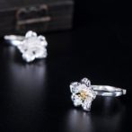 梨の花が白くてとても可愛いです。シルバーを使い花びらを表現し、花蕊の部分を金色にし、上品でキレイです。大きさがやや大きめなデザインのため、存在感があります。