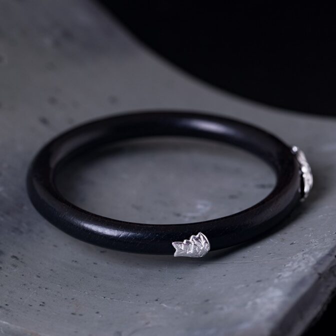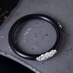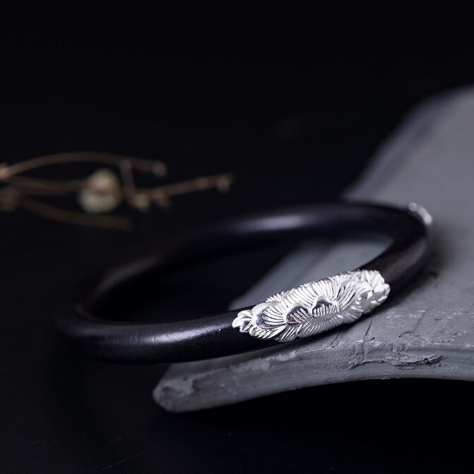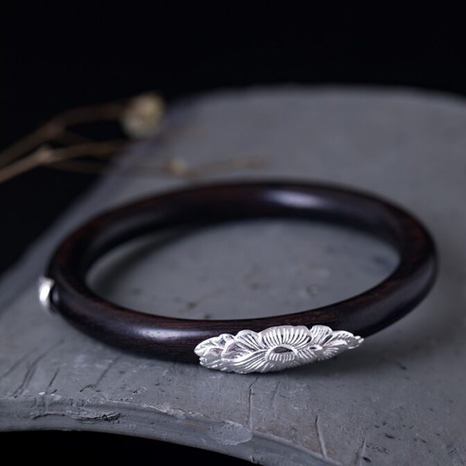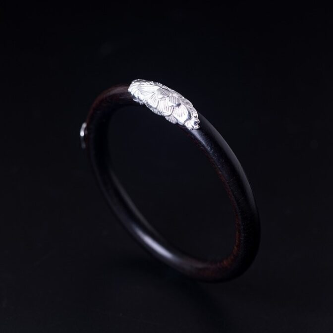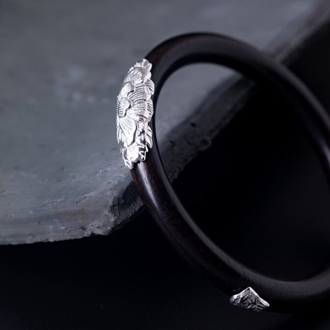 牡丹のバングル ボタン 黒檀 シルバー B015