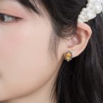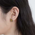 オリジナルアクセサリーシルバーピアスグリーンメノウ琥珀(こはく)
