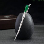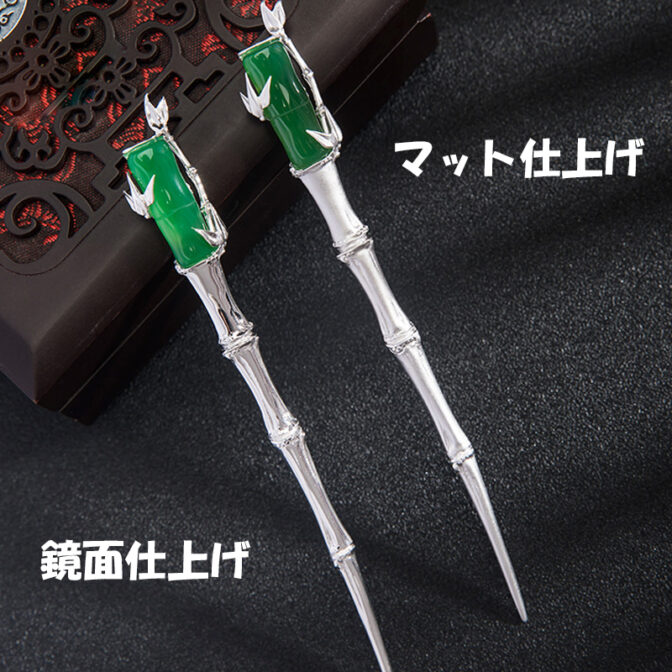 オリジナルアクセサリーシルバーかんざしグリーンメノウ竹(たけ)
