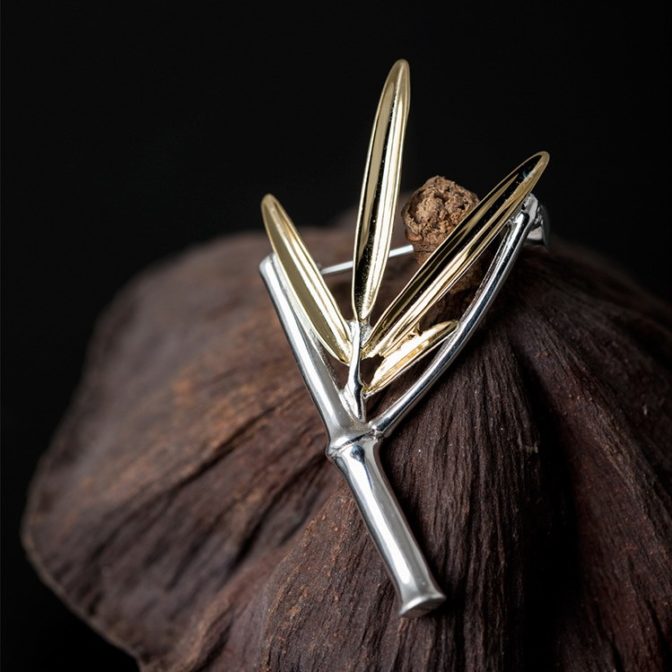 今度、紹介したいのが「竹(タケ)」です。竹の特徴としては「葉っぱの形」と「茎の区切りとなる節(ふし)」です。こんな特徴を捉え、アクセサリーで表現しました。ご覧いただければ幸いです。