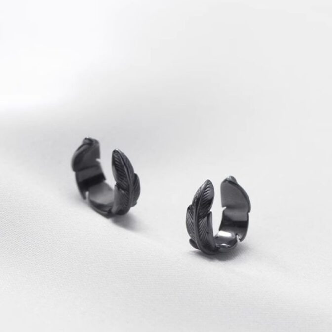 このイヤーカフは、独創的なデザインで羽のイメージを取り入れており、ブラックカラーが洗練された印象を与えます。男性も女性も自信を持って身に着けられる素敵な耳飾りです。ファッションのアクセントになること間違いなしです。