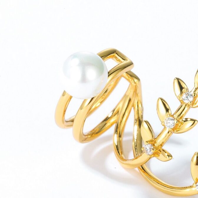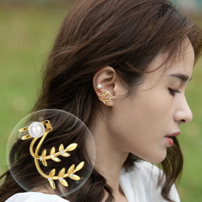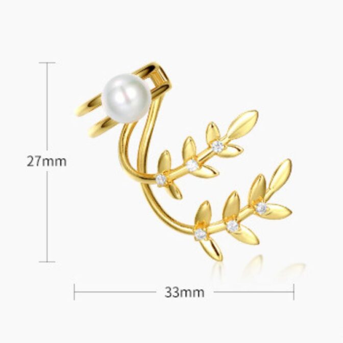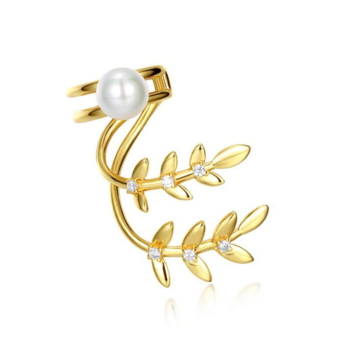 自然を感じる葉っぱデザインのパールイヤーカフ-華やかな印象を与える P115