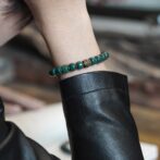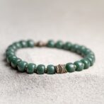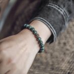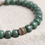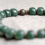 素材として菩提根を使用したブレスレットは、渋い緑色が特徴的です。個性的でおしゃれな一品です。菩提根は古くから精神的な成長や悟りの象徴とされており、このブレスレットを身に着けることで内面的な充実感を得られると言われています。手作りの温もりが感じられるこのブレスレットは、日常のコーディネートに自然なアクセントを添えるだけでなく、心の安らぎももたらしてくれるでしょう。シンプルで洗練されたデザインは、どんなシーンにもマッチする汎用性の高いアクセサリーです。