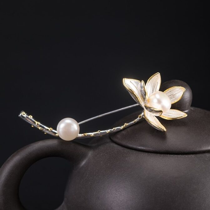 蓮の花のブローチ はす パール C016