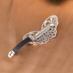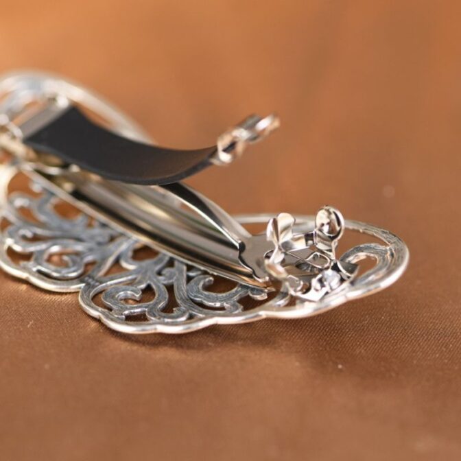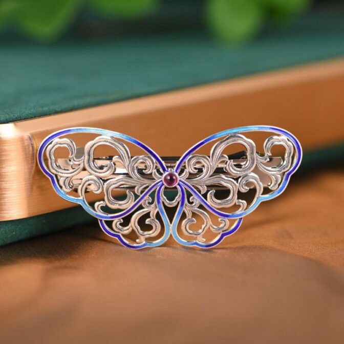 このバレッタは、繊細なデザインと落ち着いた色合いで、髪型に上品さを添えてくれます。蝶々の形は女性らしさと優雅さを象徴し、ヘアアクセサリーとしての存在感を際立たせています。七宝焼の技法を取り入れることで、日本の伝統的な美しさと現代の洗練されたデザインが融合されています。髪を留めるだけでなく、ファッションアイテムとしても楽しめるバレッタは、日常使いから特別な場面まで幅広く活躍してくれることでしょう。