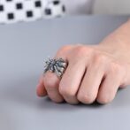 この蜘蛛のリングは、その迫力あるデザインで注目を集めます。燻し仕上げを施したことで、よりかっこいい印象を与えます。