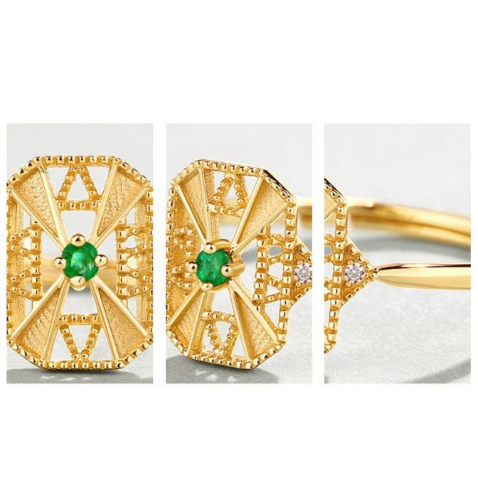 透かしのリング エメラルド オシャレ 0313