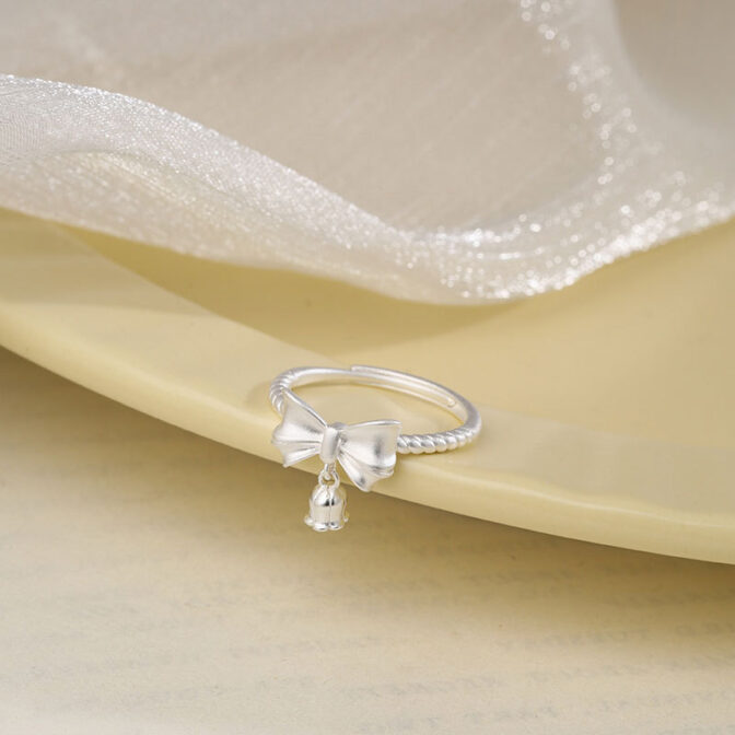 鈴蘭と蝶結びのシルバーリング:指先を彩る上品なアクセサリー R301