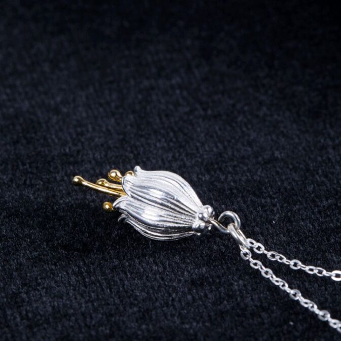 鈴蘭のペンダントは、純白の花びらが優美に並び、繊細なディテールが施されています。鈴蘭の花言葉は「純潔」「幸福の再来」であり、このペンダントを身につけることで、身に着ける人に清らかな幸せをもたらすことでしょう。デザインには、鈴蘭の小さな鈴のような花が軽やかに揺れる様子が再現されており、見る人の心を穏やかにします。柔らかな色合いと洗練されたデザインは、どんな衣装にも上品にマッチし、優雅さを一層引き立てます。鈴蘭のペンダントを身につけることで、自然の美しさと日本の四季を感じながら、心に安らぎを得ることができるでしょう。