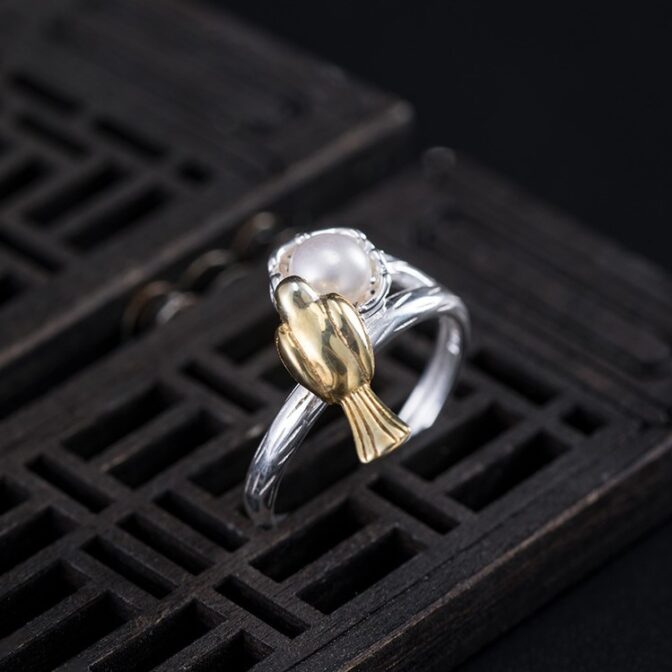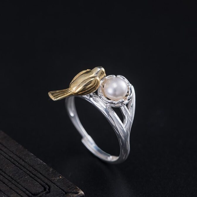 <受注制作>鳥のリング とり パール シルバー R070