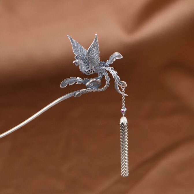 鳳凰は、東洋の神話において、不死鳥として知られています。このかんざしは、その鳳凰の美しさと神秘性を表しています。