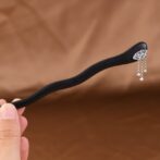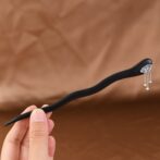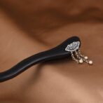 黒檀とシルバーのエレガントな和かんざし-洋装にも合わせやすい K075
