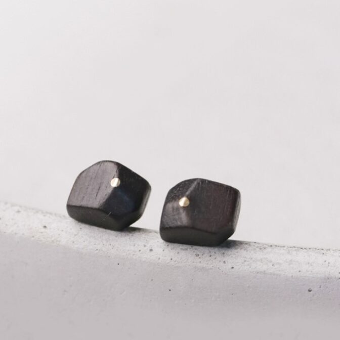黒檀と黄銅のコンビネーションが特徴的なピアス、男女問わずおしゃれなアクセサリーです。