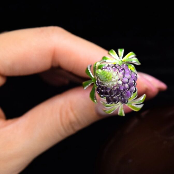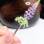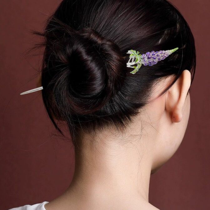ルピナスの花をテーマにしたかんざしは、動きのあるデザインと上品な七宝焼きの色合いが見事に調和し、スタイリッシュな仕上がりを実現しています。