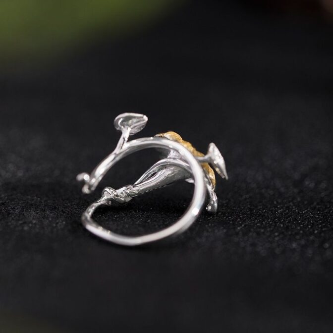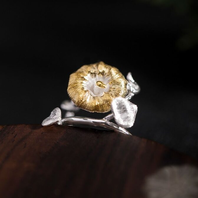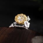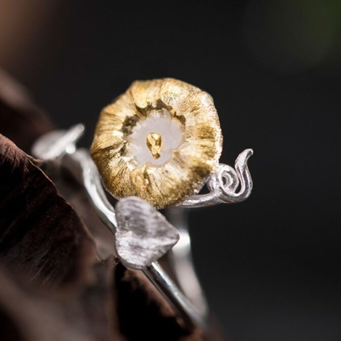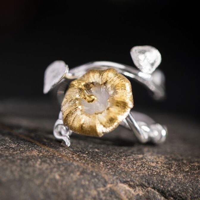 このリングは、アサガオの美しい曲線と繊細な花びらを忠実に再現しながら、現代的なエレガンスを取り入れた作品です。金色を使った花びらは、上品なデザインを完成させ、光を反射して輝きます。細部までこだわり抜かれたデザインは、身につける人の魅力を引き立て、特別な日の思い出をより一層華やかに彩ります。