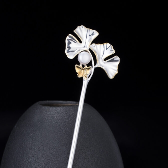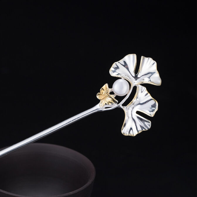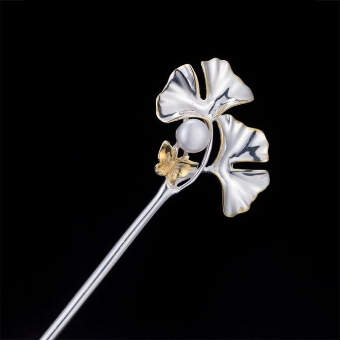 イチョウと蝶々のかんざし 簪 銀杏 ちょうちょ プレゼント ギフト K028