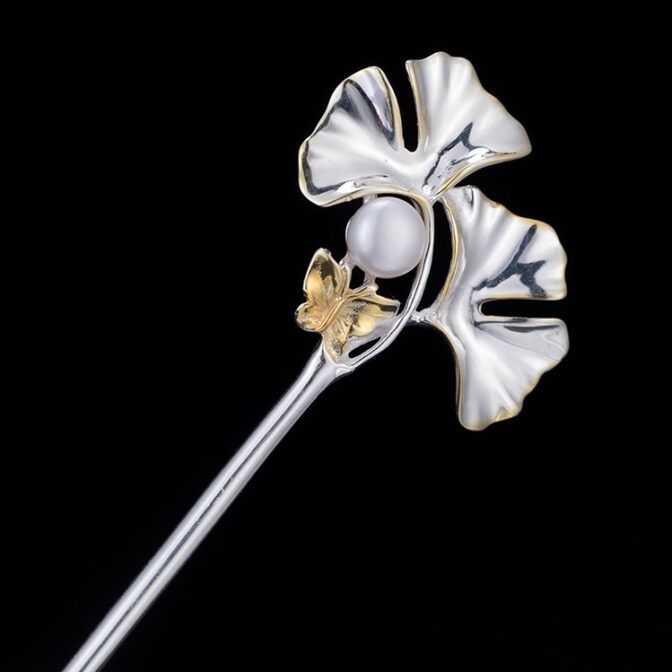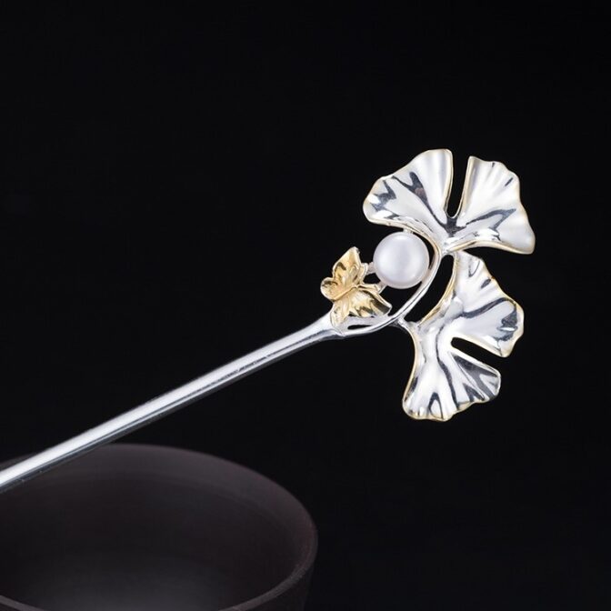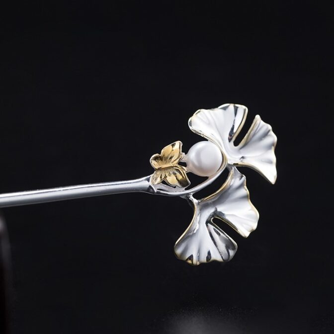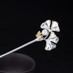 オリジナルアクセサリーシルバーかんざし淡水パール銀杏(イチョウ)
