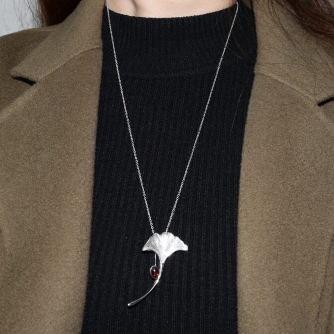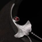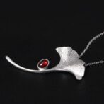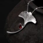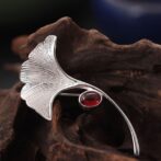 オリジナルアクセサリーシルバーペンダントブローチガーネット銀杏(イチョウ)