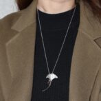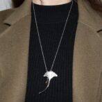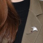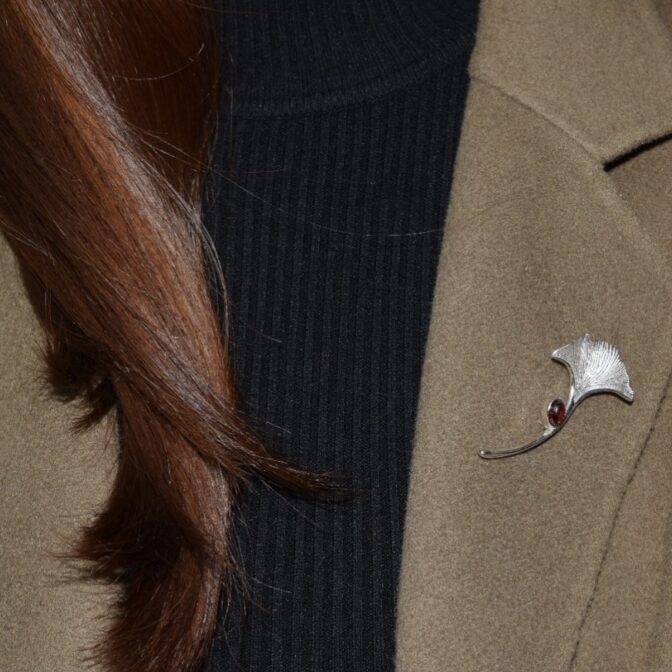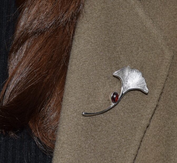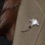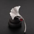 イチョウのブローチ&ペンダント ガーネット SILVER チェーン付き 0032