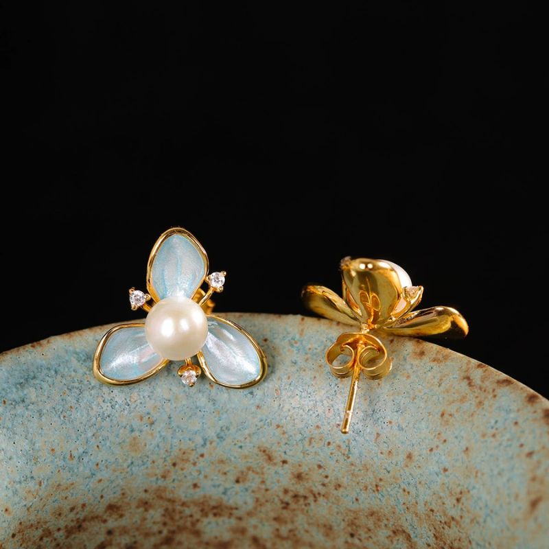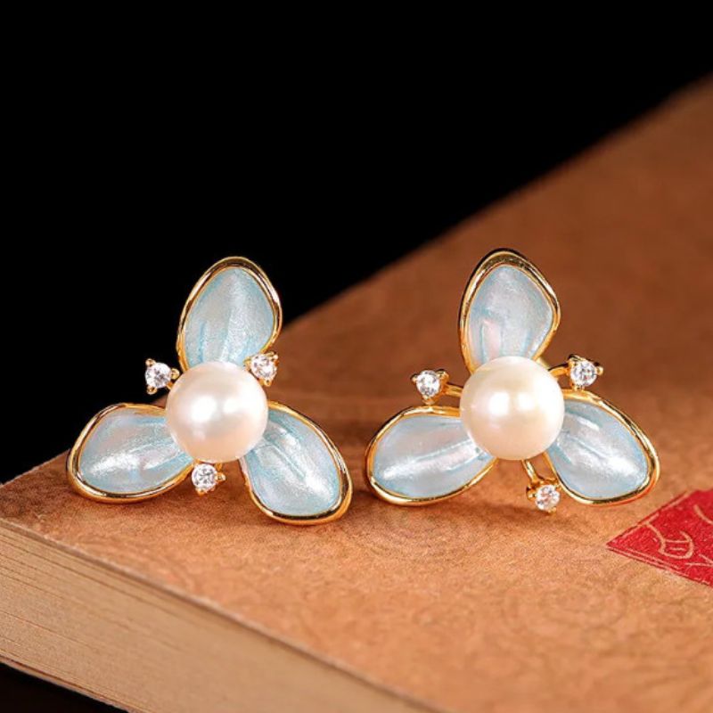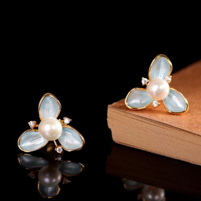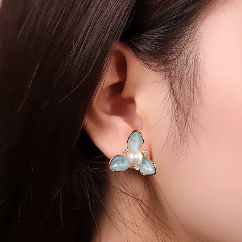 エンレイソウをインスパイアしたピアスで、リアルな形状を表現しています。七宝焼やパールをあしらった、この上品なアクセサリーは、特別な魅力を放っています。パールはエンレイソウの中央に配置され、まるで花の中で輝く露のように見えます。このアクセサリーは、自然の美しさとクラフトマンシップの調和を感じさせ、身につける人に特別な気持ちをもたらすことでしょう。