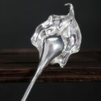このかんざしは、そのオランダカイウの花びらをリアルに再現しており、シルバーの素材が重厚感を与えています。このかんざしをつけることで、女性の髪型が一層華やかになり、特別な日にもぴったりのアクセサリーとなるでしょう。