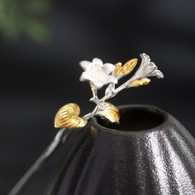 ギボウシをモチーフにした上品なかんざしは、日本の伝統的な美しさとエレガンスを表現しています。その繊細なデザインと華やかな色合いは、着物や浴衣などの和装に華やかさをプラスしてくれます。ギボウシの花言葉は「高潔」「気品」「清楚」など、美しいイメージがたくさん詰まっています。ぜひ、このかんざしを身につけて、日本の美しい文化を楽しんでみてください。