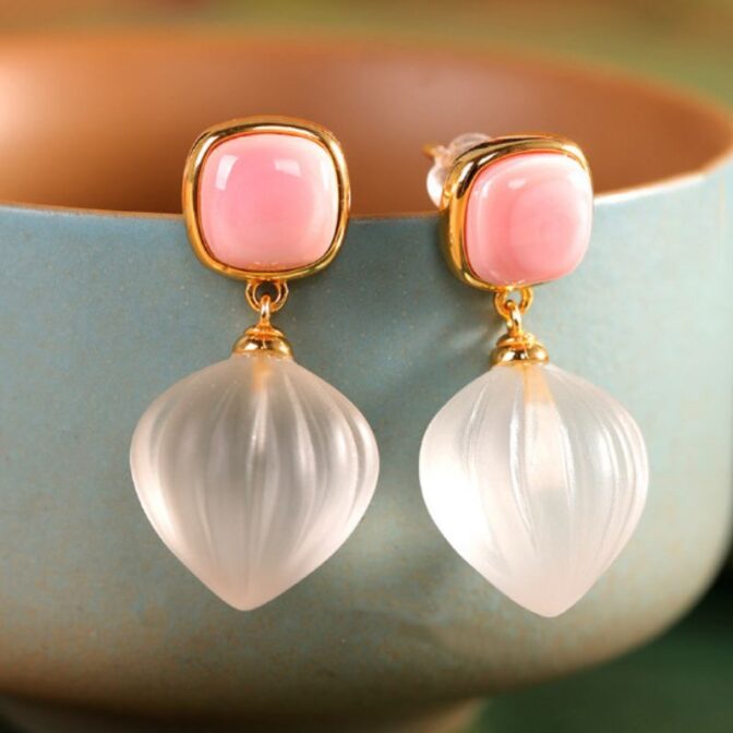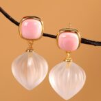 コンクパールと水晶を組み合わせた、洗練された印象のピアスです。その輝きは、耳元に優雅さを添え、どんな装いにもぴったりとマッチします。特に、日常使いから特別なイベントまで、さまざまなシーンで活躍すること間違いなしです。これらのピアスは、繊細でありながらも存在感があり、身につける人の魅力を引き立てます。ぜひ、この美しいアクセサリーで自分だけのスタイルを完成させてください。