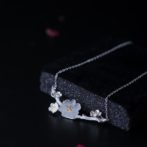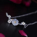 初めて見た時、惚れました。花期が短くて年中に見られません。いつでもどこでもその美しさを見れるように、アクセサリーにしました。水晶という素材を使用して「サンカヨウ」の特性を生かしながら制作しました。水晶をマット仕上げにし、白くて透明感のあるお花を表現しました。水にぬれると透明になります。「サンカヨウ」の特性を最大限に表現できました。