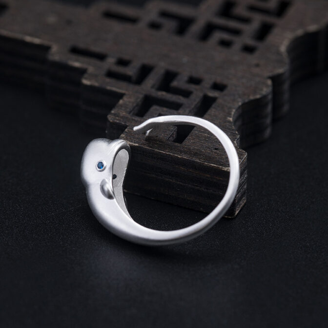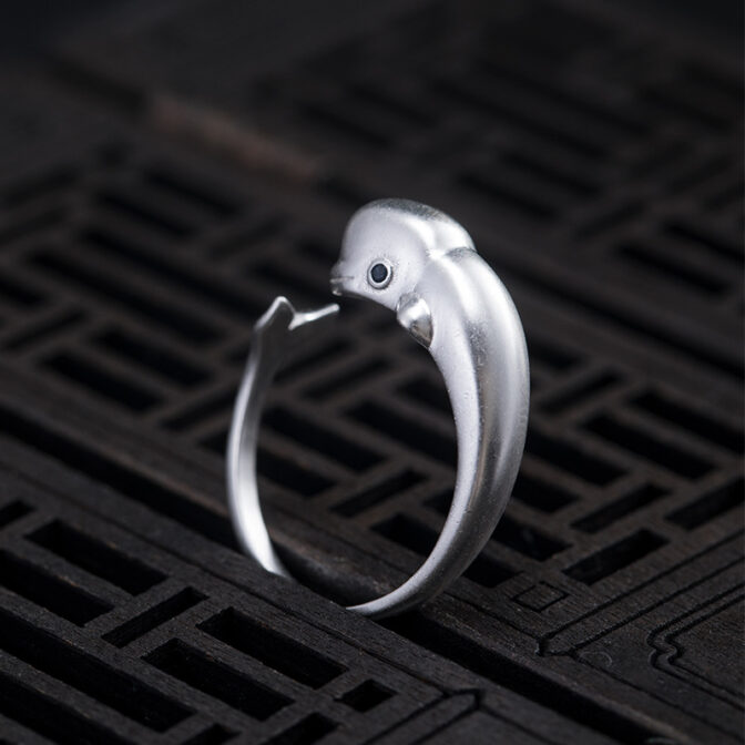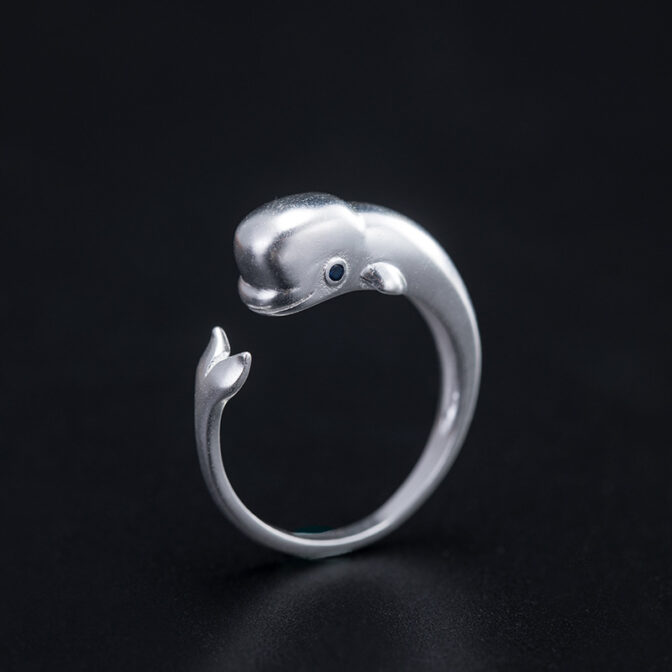 そんなシロイルカをモチーフにしたスターリングシルバー製のリングがあります。このリングは、シロイルカが泳ぐ姿を立体的に表現しており、細部までこだわったデザインが魅力的です。