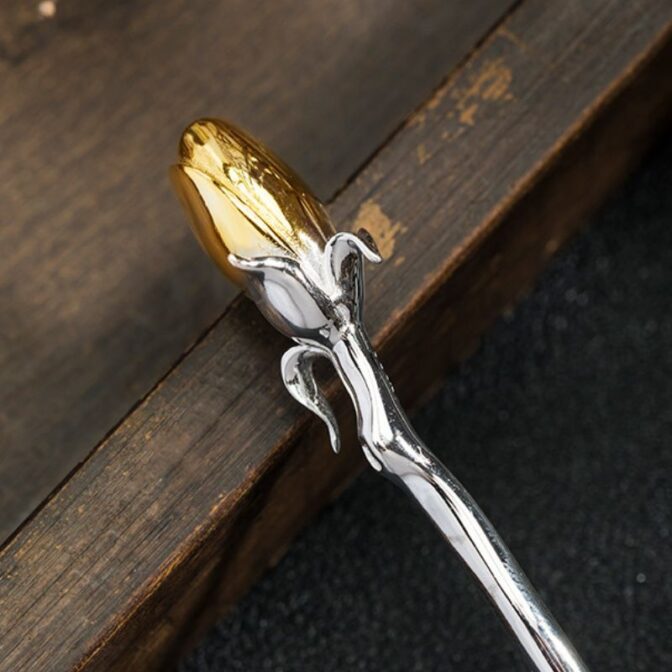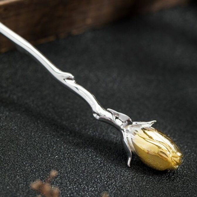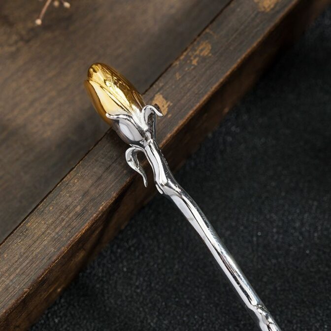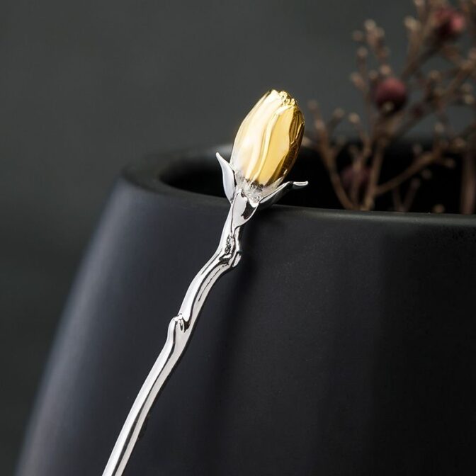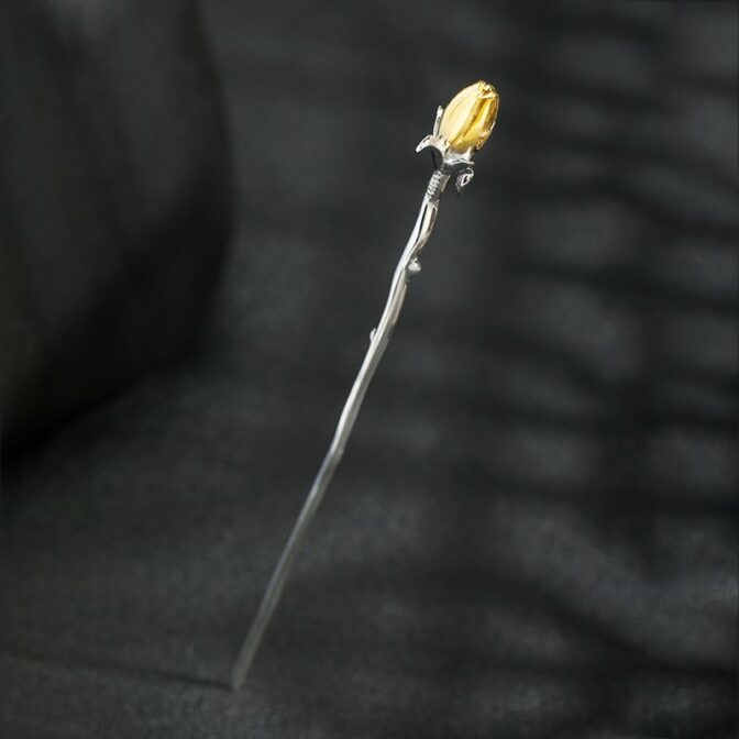 スターリングシルバー製の薔薇かんざし:和装も洋装もマッチK079