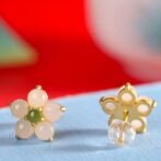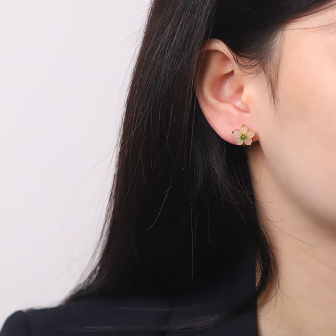 緑と白のネフライトで作られたピアスは、飴のようにとろけるような可愛らしい耳飾りです。この繊細なデザインは、どんな装いにも華やかさを添えてくれることでしょう。軽やかでありながら存在感もあり、耳元で優雅に揺れるたびに光を反射し、落ち着いた輝きが特徴的です。友人とのカフェタイムや大切な人とのデート、そして特別なイベントの日にも最適です。このピアスを身につけることで、あなたの魅力が一段と際立つこと間違いありません。