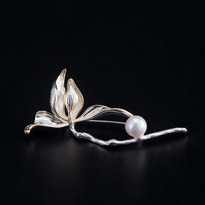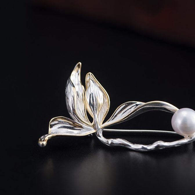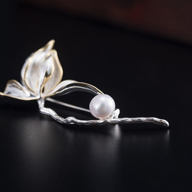 ハクモクレンのブローチ 白木蓮 パール SILVER 0225