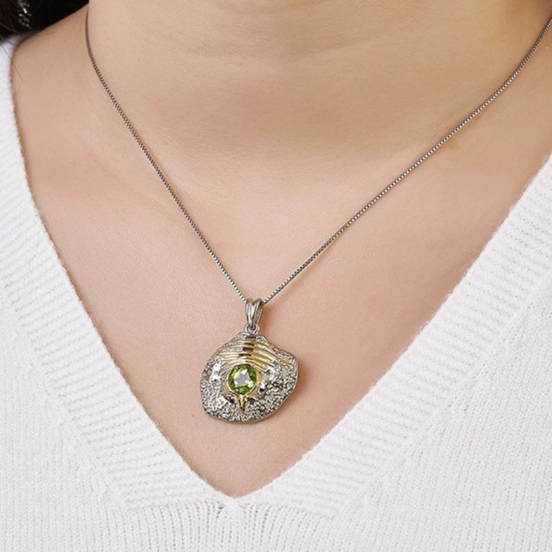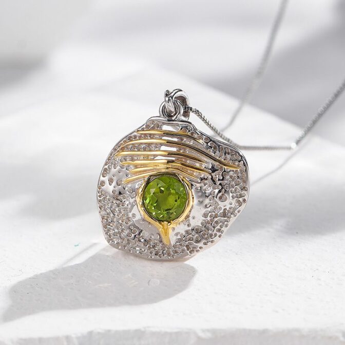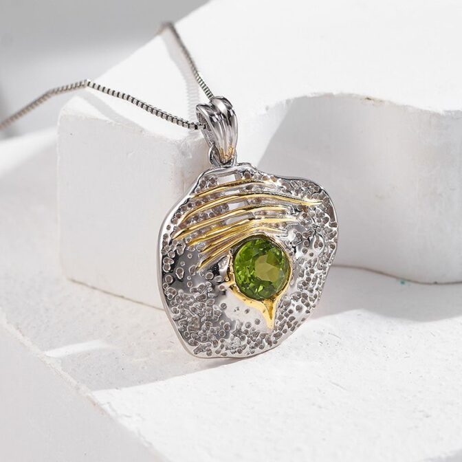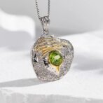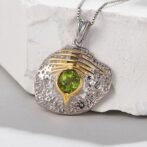 <受注制作>ペリドットのペンダント – ユニークなラインとテクスチャーが特徴 N154
